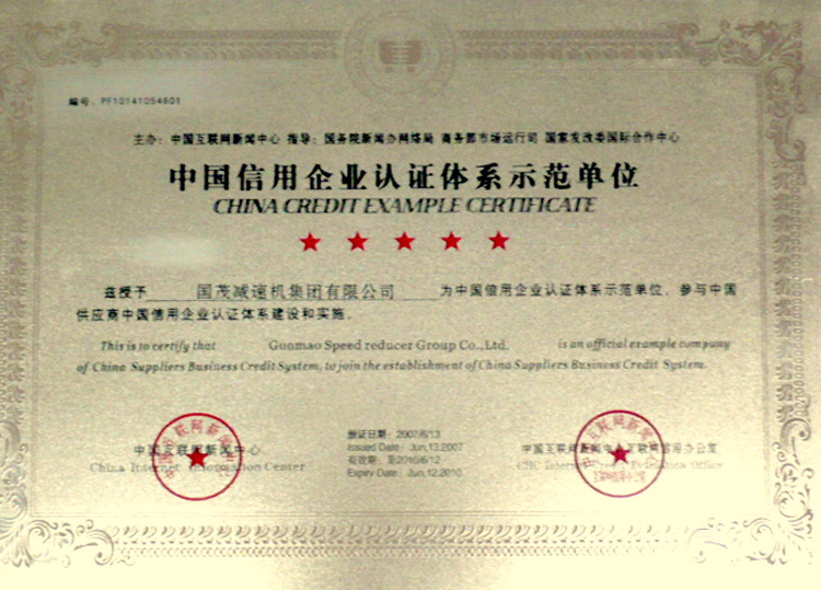 2010年,“國(guó)茂減速機(jī)”商標(biāo)被行政認(rèn)定為中國(guó)馳名商標(biāo)。